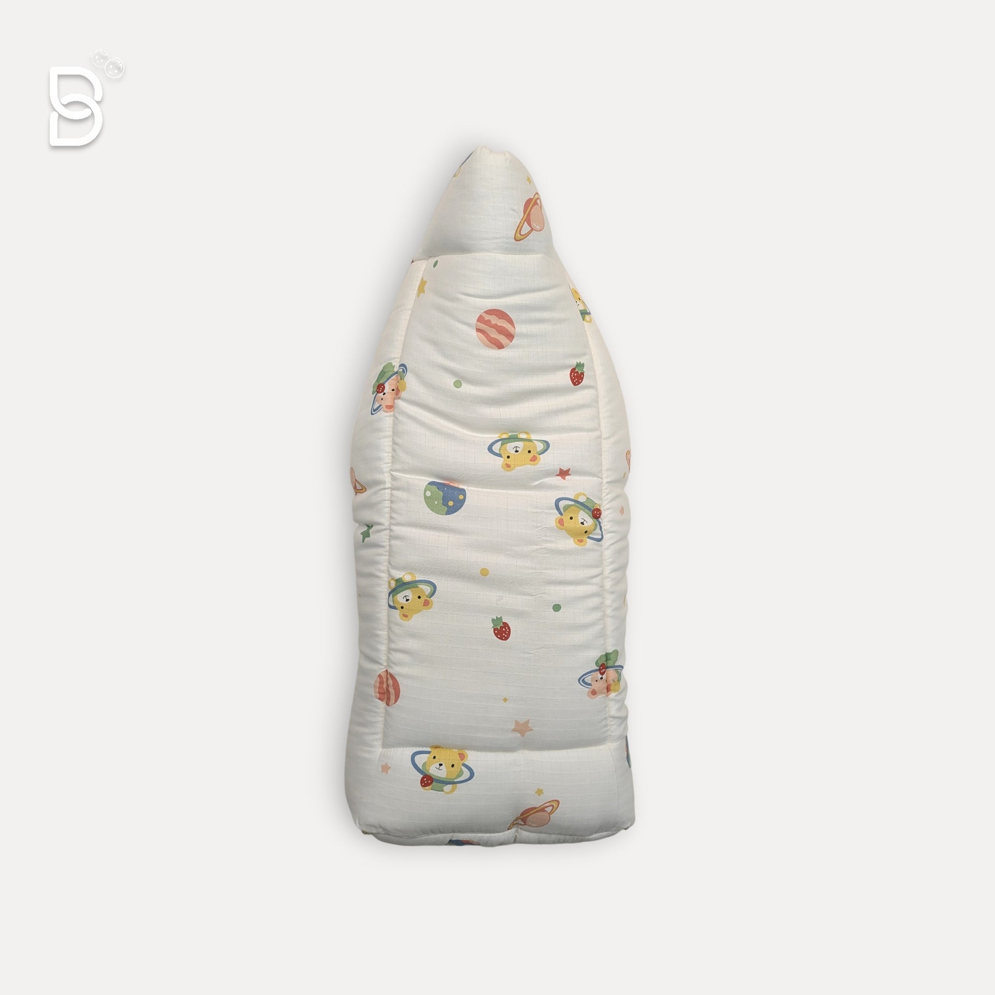 Whimsical Space Print: Features a charming "Space & Bears" theme with stars, planets, and cute characters on a clean white base.